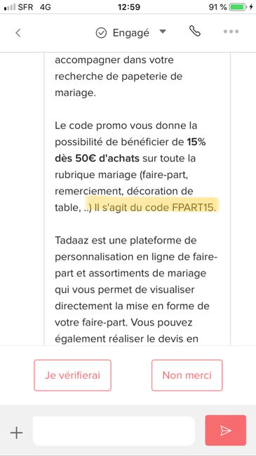 Coucou les filles, Je souhaiterais commander mes faire-part sur le site tadaaz. Ils sont partenaires avec mariages.net donc on a-15%. J'ai reçu un bon mais je comprends pas ce que je dois en faire lol. Quelqu'un a déjà eu le cas ? Merci 😊