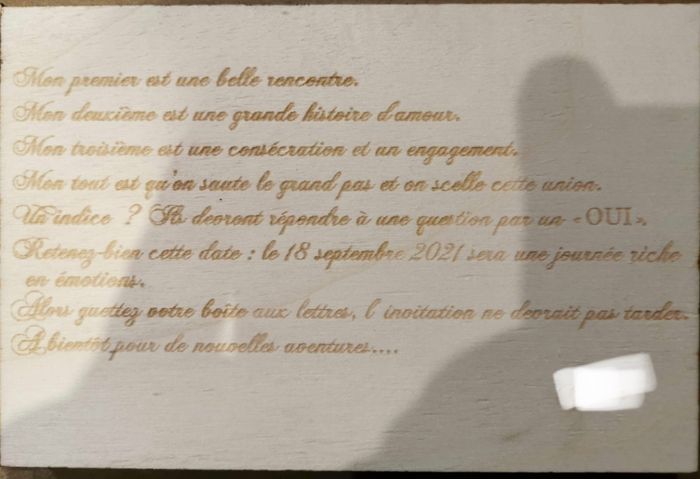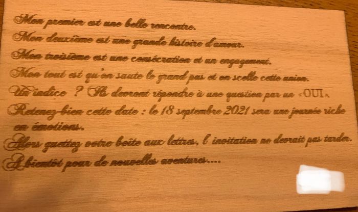 Coucou les fm je voudrai reparler des enveloppes! Voilà mes save the date étant en bois j ai peur que si je prend des enveloppes normales la poste ne fasse pas attention et que mes std arrivent cassés (et oui on connaßt la délicatesse de la poste)...