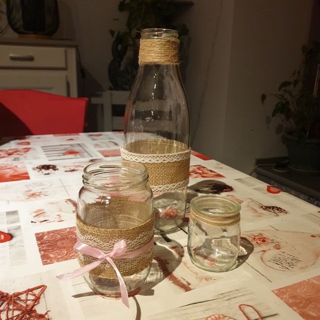 Hello ! Ma déco de table va resembler à ça, sur la photo. J'ai déjà récupéré plein de petits pot de yaourt la laitière. Mais maintenant je cherche un pot ou un bocal plus grand comme sur la photo pour jouer avec la hauteur. Lesquels me conseillez...