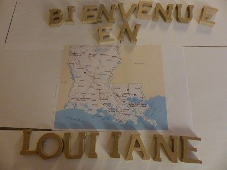 et vous comment allez vous accueillir vos invités à l'entrée de votre salle ? Voici la mienne notre thème est la new orléans, la louisiane oui je sais il manque le "S" il y en avait plus je l'attends