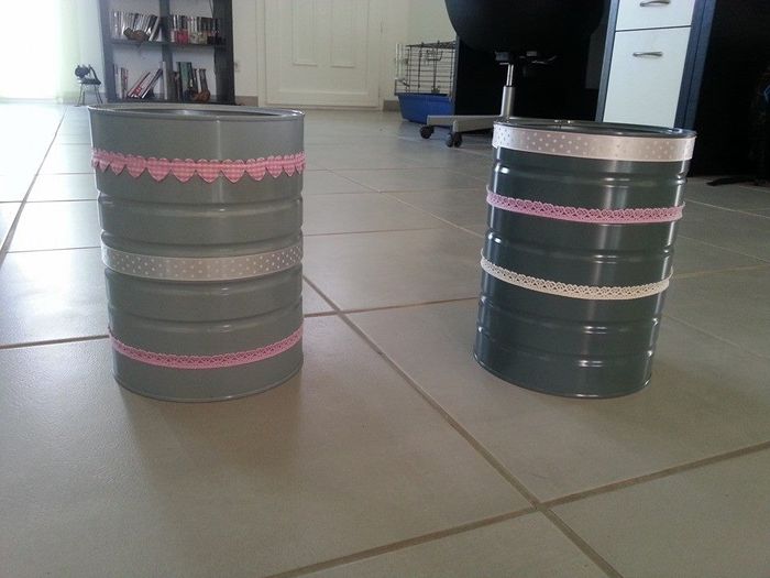 Hello tout le monde ! J'ai besoin de votre avis ! En guise de vases à poser sur les tables, je voulais customiser des boîtes de conserve. Du coup j'ai acheté tout plein de serviettes, de masking tape, etc... Et donc en premier essai ça donne ça : Et...