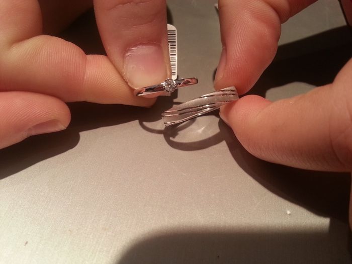 Voilà nos bagues définitives : solitaire pour moi et alliance pour lui. Et vous, quelles sont les vôtres ?