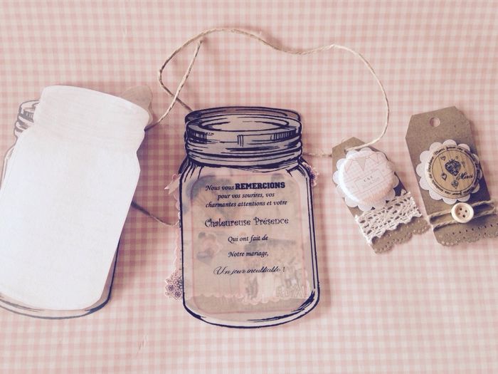 Coucou les filles je suis curieuse ?Vous allez offrir quoi a vos invités ? Pour nous se sera des petits pot de caramel beurre salé en plus des éternelles dragée Ça ressemblera à ça Et Ca nous servira de marque place à table on joint l'utile à...