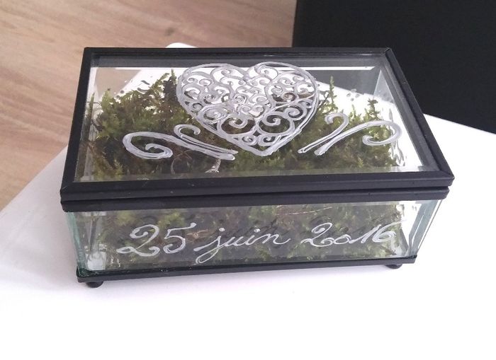 Il y a 3827 joursJ'y avais pensée mais je m'attendais pas à pouvoir me le payer. Enfin a en trouver dans mon budget. Et tada! J'en ai eu pour 10EUR les chaises et la boite pour les alliances. Trop contente!