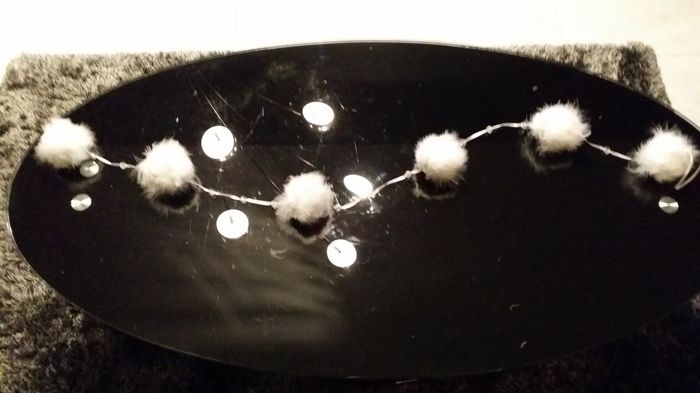 Voilà ce qu'on a récupéré ce week end, acheté via le bon coin - 46 petite boules plume - 30 grosse boules plume - 30 guirlandes de 6 boules plume - un gros sac de plumes de différentes forme - 2 petites déco plume Le TOUT pour 65€ Je pense avoir fait...