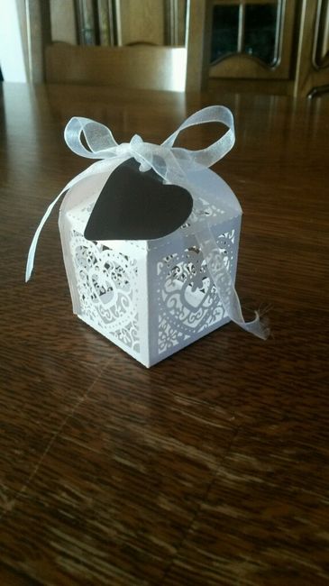 Bonjour Que pensez vous de ces contenants à dragées? Qui les as achetés? Déco blanc et chocolat avec coeurs. A l'intérieur ce sera des petites dragées coeur blanc et chocolat dans un sachet organza blanc. Merci pour vos avis!