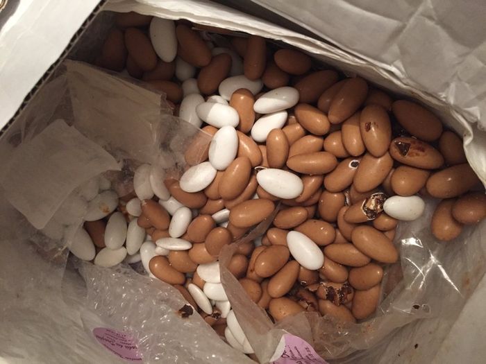 Hier je rentre toute contente de mon essai coiffure car Cheri me dit que deux colis sont arrivés dont celui des dragées! Chouette !!! J ouvre le colis trop happy et la c'est le drame ! Tous les sacs sont exploses alors que le carton était intact......
