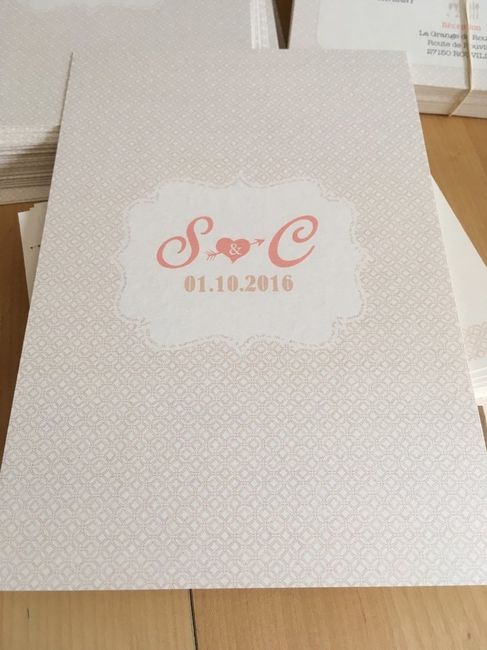 Hello les brides to be ! Ca y est, ils sont arrivés !!! Tout beaux tout chauds y'a plus qu'a assembler et expedier... Je fais ca demain avec l'une de mes temoins cheries ??? Hate de recevoir les premiers retours de nos invités !! Bises a toutes ...