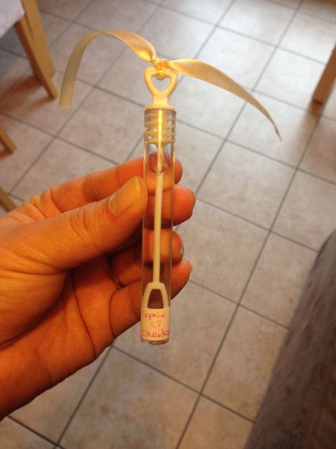 Colis avec mes 96 flacons de bulles pour la sortie de la mairie sont arrivés ! ! Très satisfaite même si je les imaginais un peu plus grands ! Maintenant dilemme, j'hésite à mettre au bout une étiquette avec écrit nos prénoms et la date du mariage,...