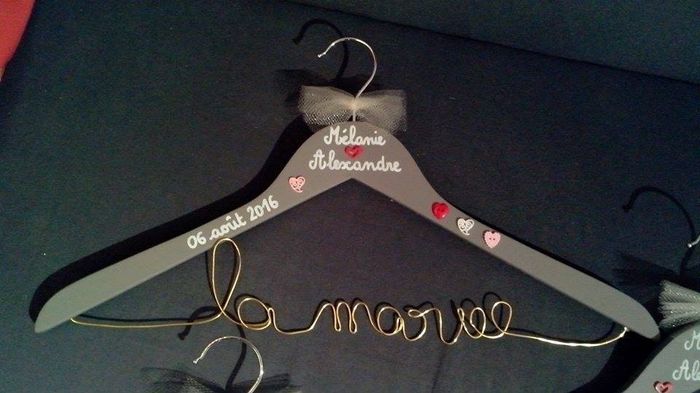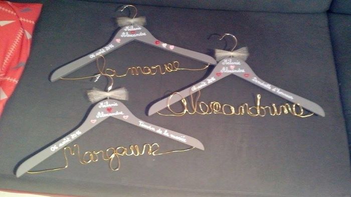 Je viens de finir mes cintres personnalisés à offrir avec mes kits de la témoin et de la demoiselle d'honneur parfaite. Chéri qui m'a prise pour une folle quand je lui ai demandé de me faire les trous a trouvé ça super beau. Je pense en faire un...