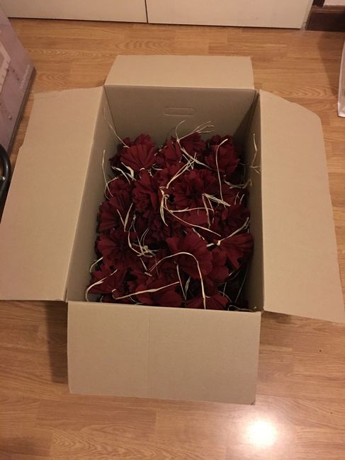 Il y a 3681 joursEt voila .. 350 fleurs faites en papier crépon rouge Bordeaux !! On en fait autant en Ivoire