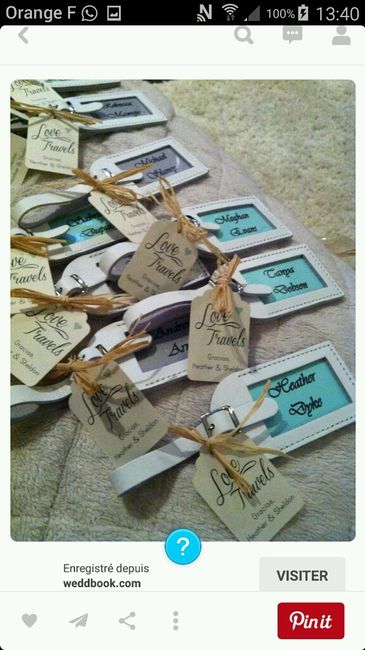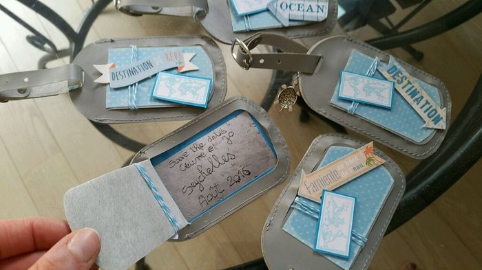 Des étiquettes bagage que j'ai décoré avec le thème de notre mariage!