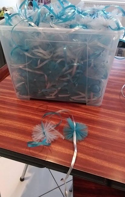 Une bonne chose de faite ! Je viens de finir les noeuds de voitures que nous donneront à nos invités dans le welcome bag. Il y aura 3 noeuds par voiture si tout se passe bien Nœuds de voiture Nœuds de voiture