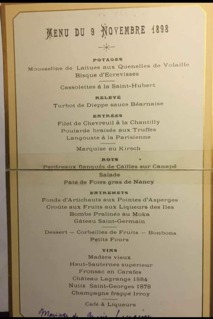 Coucou la commu! Petit post partage! Ici on demande souvent quel repas manger, choisir , du plus simple au plus copieux etc.... Voici un menu que j'ai trouvé en publication Facebook qui date de 1898 avec sa légende ! Auriez vous eu la force de manger...
