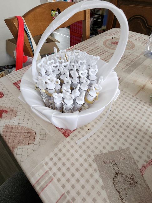 Coucou la commu! Ce matin, coût de revient de tubes à bulles pour la sortie de l'église ou mairie ! Ici c'était à l'église ! Il y en avait aussi des argents non brillants Et petit panier de présentation Petit panier (destosckeur): 1€ Tubes (amazon) :...