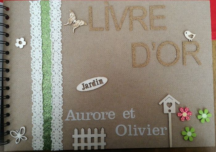 Il y a quelques jours j'ai posté les pages intérieures de notre livre d'or. Je bloquais sur la couverture et après un petit tour chez Cultura, hop sauvée! LolJ'ai trouvé les éléments d'embellissement idéaux! En effet, notre déco sera l'entrée d'un...