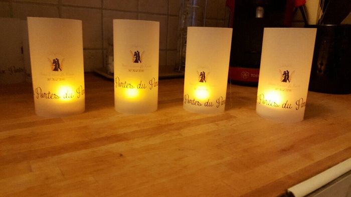 Coucou les filles voici nos petits cadeaux invites qui seront sur les tables nous avons pris des petites vérinnes remplis avec de la parrafine et petite etiquette personnalisés qu'en pensez vous ?