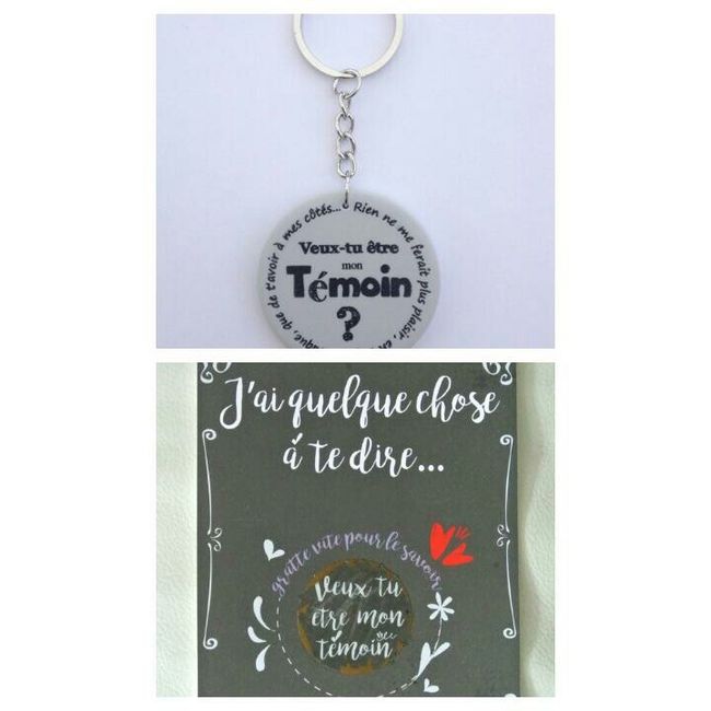 Bonjour comment avez-vous fait votre annonce à vos futur(e)s témoins ?J'ai opté pour ce porte clé et ce papier à gratter.Voir leur regard rempli de larme de joie m'a fait énormément plaisir.