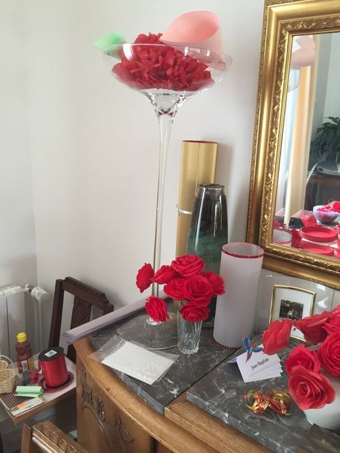 Coucou la communauté ,Es ce que vous pensez que si je met un gros pompon rouge dans un vase martini avec des guirlande en perle ca rendra aussi bien qu'une boule de fleurs?Sinon j'ai pensé à des vase rond mais que mettre dedans?Mon code couleur c'est...