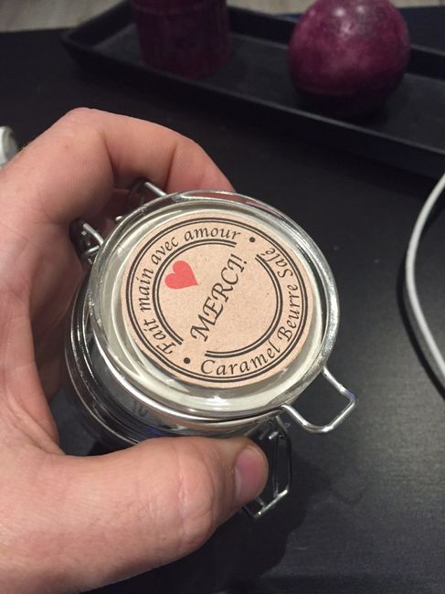 Alors voilà où nous en sommes ^^ Ces petits pots servirons de marque place et de cadeau aux invités Mon chéri en a bavé pour faire le petit rond collée sur le dessus Voilà ^^ je suis toute contente