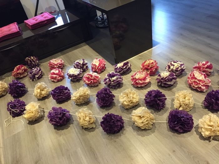 Coucou voilà je vous montre ma dernière réalisation Les guirlande de pompon serons placé autour des arbres de la salle voilà ^^ vous en pensez quoi ? Bis les filles