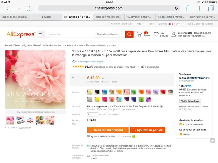 Les filles je voudrais mettre des boules de papier en alternance blanc et rose pastel accroches au bout des bancs de l église ... Avez vous un contact sur alliexpress de qualité ? A votre avis est ce que je mélange les tailles ? Quel taille me...