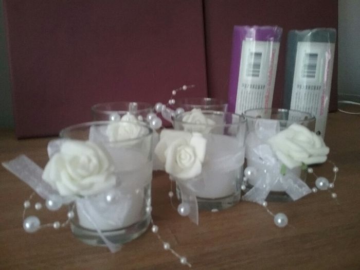 On voit que ça approche... sac invité terminé avec eau, éventail et noeuds de voiture, pour ceux qui ont des enfants il y a un petit gateau et des lingettes. Pour les prestataires, j'ai fait un sac avec un petit cadeau (porte clefs selon leur metier)...