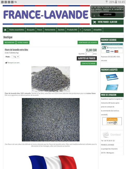 J'ai reçu notre lavande. 2kg, pour nos sorties mairie et église. 32euros avec les frais de port. Lavande française commandée sur passion lavande.fr. le personnel est très réactif, à disposition. Je recommande.C'est une de mes témoins qui fait les...