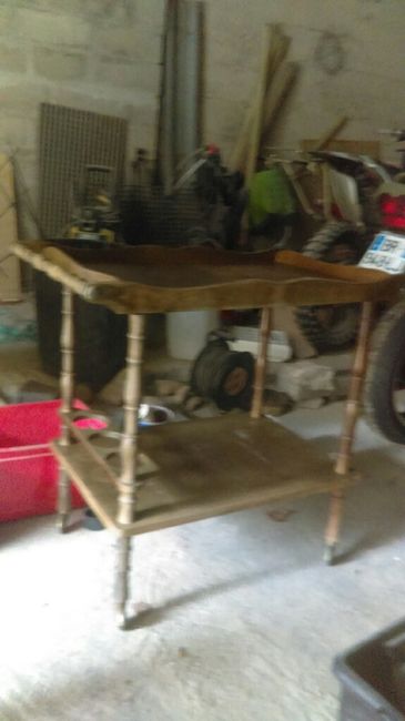 Bonjour à tous, Ce matin je suis aller faire un petit Tour au parchemin, c'est un style emaus/trocante. J'ai trouver cette desserte pour seulement 2euro ... maintenant il Me faut la poncer et la modifier un peu, et la l'assurer pour un effet bois...