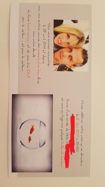 Coucou les futures !!! j'ai reçu mes faire part, je suis trop heureuse ! la semaine prochaine je me mets en mode adresse, j'attend avec impatiente mes timbres personnalisés !!!! Bref je suis aux anges ! faire part intérieur faire part