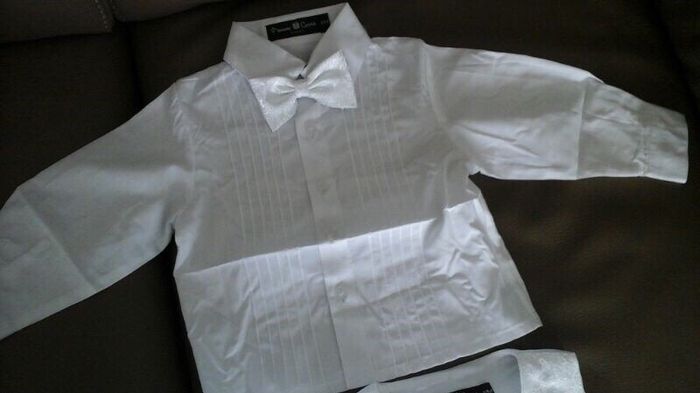Pour la cérémonie laïque et pour une partie du vh mon petit chéri va porter un petit smoking en blanc comme ça maman. Après on va lui mettre autre chose.