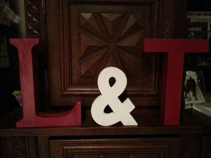 Voila jai commencé ma deco. C'est pas grand chose juste la peinture des lettres. Il faut encore les décoré et savoir si je met la T ou le L en premier.