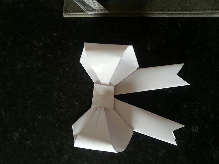 Mon essai noeud en papier, je suis satisfaite du résultat mais cela fait trop rigide a mon goût. Je vais essayé avec différentes matières pour voir se qui me plaît le plus