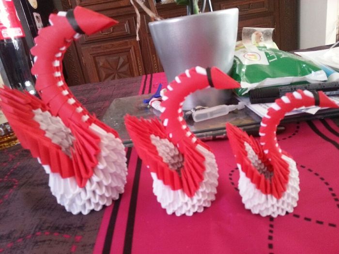 Après un premier essai j'ai trouvé un autre tuto que j'ai réalisé mais je trouvais le cygne trop gros ( c'est pour faire un cadeau au inviter) du coup je l'est réduit jusqu'à la taille souhaité er voilà le résultat. Je vais voir a y mettre une petite...