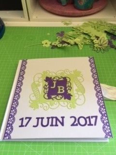 Bon apres avoir travaillé tout l'après midi, je vous présente mon faire part. Il y a tout un travail de decoupe mais je suis assez fière de ce qu'on a fait