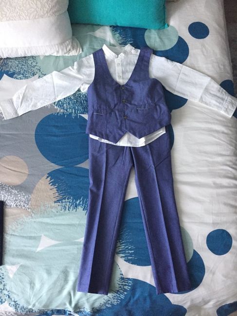 En me promenant ce matin que j'ai craque sur un costume pour mon fils. En effet, j'imaginais quelque chose dans les tons bleu violet. Mes bijoux étant dans les tons bleu ainsi que présent dans la déco et bouquet. Après avoir jeté un vague coup d'œil...