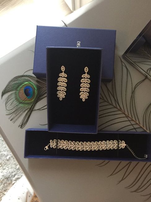 Voici ma parure pour jour J! Ma robe ne permet pas de porter un collier. Donc voici les boucles d'oreilles et le bracelet. Le Crystal est légèrement bleuté.