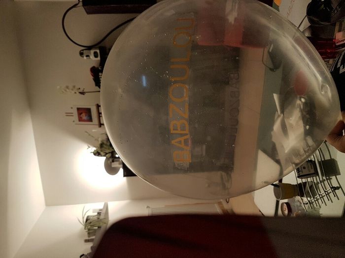 Avec monsieur chéri nous avions eu le coup de coeur pour la prestation proposée par une dame à un salon du mariage. elle proposait d'imprimer ce que l'on voulait sur des ballons transparents gonflés a l'hellium. on a tout de suite demandé un devis...