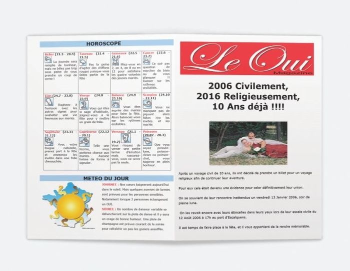 Bonjour, Nous sommes mariés civilement le 12 Août 2006 et pour nos 10 ans nous nous marions religieusement le 13 Août 2016.
