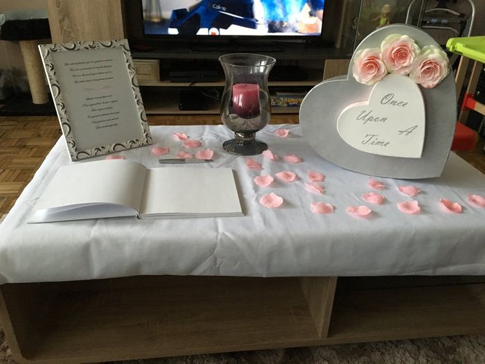 Voici notre table test ! Qu'en pensez vous ? Sachant qu'avec mon homme on va mettre un chandelier 6 branche à la place du vase avec la bougie dedans (ce sont nos centres de tables et ca ferais trop répétitif)