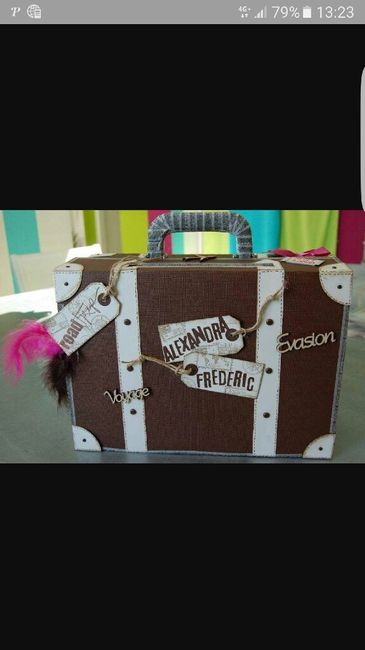 Aujourd'hui j'ai trouvé de quoi faire mon urne. J'ai longuement hésité entre la valise ou la boîte aux lettres US. J'ai aussi pris de quoi faire mon plan de table (lettres + boules transparentes) et les stickers qui correspondent à notre destination...