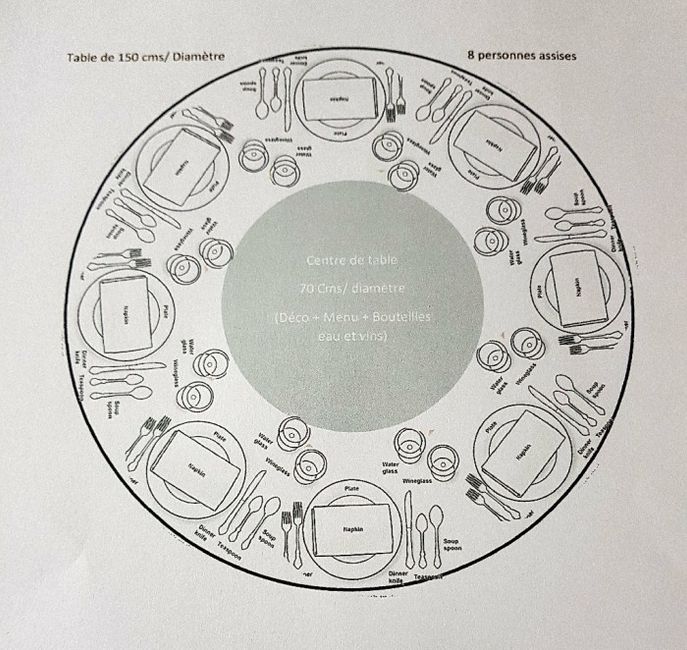 Coucou ! Je suis en train de galeeeeerer a faire mon plan de table ... j'ai des tables rondes de 152 cm et j'ai une table avec 6 personnes une autre de 7 , d autres de 8... Mdr du grand nimporte quoi. A votre avis combien de personnes max sur une...