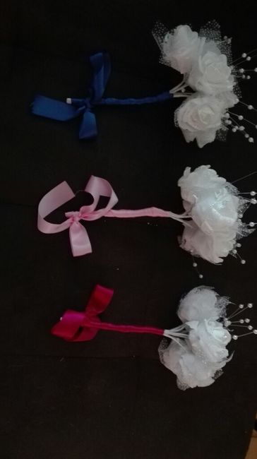 Voila mes amplettes du jour,fait en compagnie de ma super témoin qui déchire(qui va d'ailleurs me creer les livre de coloriage des enfants en les dessinant elle même,va me faire les noeuds pour les voitures des invités).Je vous présente les bouquets...