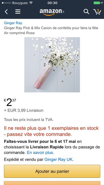 Hello les BTB! Question du soir: j'ai acheté des canons à confettis sur Amazon: ils sont roses et les confettis à l'intérieur sont doré! Je rêvais d'une sortie d'église avec ce type de confettis donc je suis trop contente de mon achat. J'en ai pris 8...