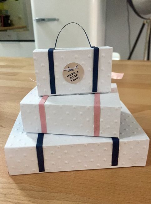 Coucou tout le monde 🌎 Je vous fais partager les valises en décoration de table que j'ai fait moi meme sur notre theme : le voyage ✈️ Nos couleurs : rose pâle, bleu marine et blanc 😃Qu'en pensez vous ?!?!