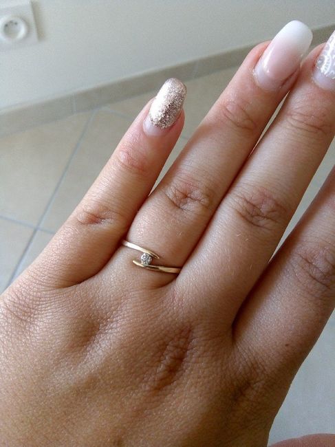 Bonjour à toutes ! J aimerais beaucoup voir vos jolies bagues. Voici la mienne, Mr l'a choisit seul et je suis plus que satisfaite !
