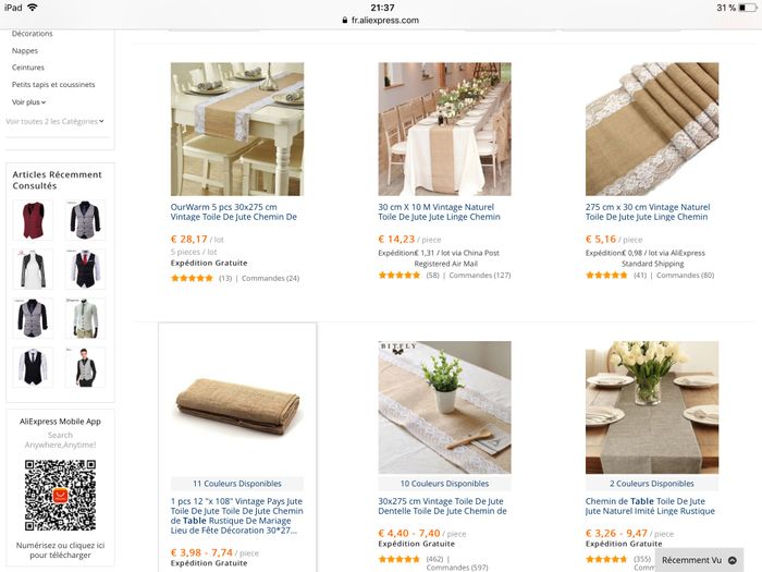 Hello la commu ! J'ai besoin d'aide pour l'achat de mes chemins de table... Je recherche un bon plan : produits de qualité, prix canon, coloris lin jute ou vert pale. Vous avez ça quelque part ? Merci