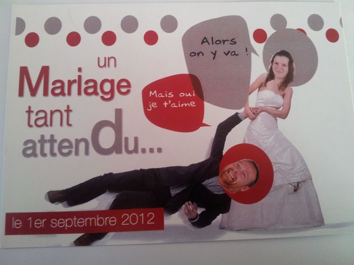 Salut à tous!! Par curisosité je me dermandais quel faire part avez vous choisi (photo)??? et quand on dit vos invités pour ceux et celles qui les ont déjà envoyés? Nous avons repéré un modele qui nous plait, simple et moderne...