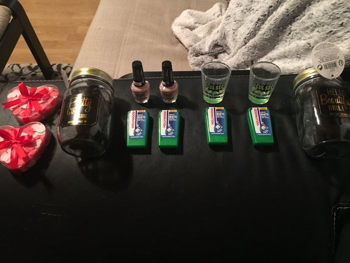 Hello tout le monde, voici la suite de notre boîte cadeau pour nos témoins, boîte fini, quelques cadeau déjà acheter reste plus cas trouver les frisures et quelques babiole genre doliprane et mouchoirs 😜 qu'en penser vous ? J'espère que sa va leur...