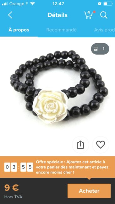 Bonjour la commu, J'ai trouvé mes bijoux (boucles d'oreilles et pendentif) pour le jour J mais je n'arrive pas à trouver le bracelet. J'ai beau regarder sur tout les sites je ne trouve pas de bracelet avec des perles noires. Notre thème est noir et...